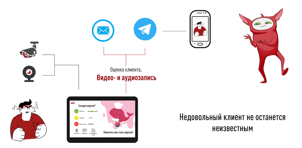 Это не только даёт контекст для разбора недовольства, но и служит эффективным инструментом предотвращения накруток со стороны заинтересованного персонала. Для записи может использоваться внешняя камера, уже установленная в помещении.