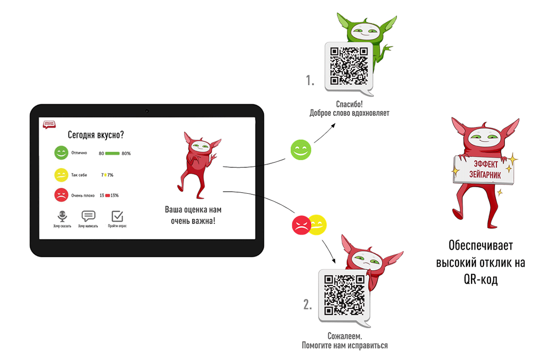 Высокий уровень отклика достигается за счёт эффекта Зейгарник (стремление завершить начатое) и мгновенной визуализации результатов на экране терминала: клиенты видят, что их мнение влияет на общую статистику, что повышает вовлечённость.