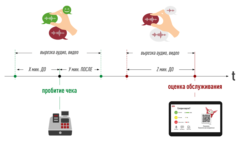Это становится возможным благодаря SenseRec - входящему в состав ТОС-ПРО аудио- и видеорегистратору, который автоматически выделяет фрагменты коммуникаций, привязанные к каждой оценке, поставленной клиентом на терминале.